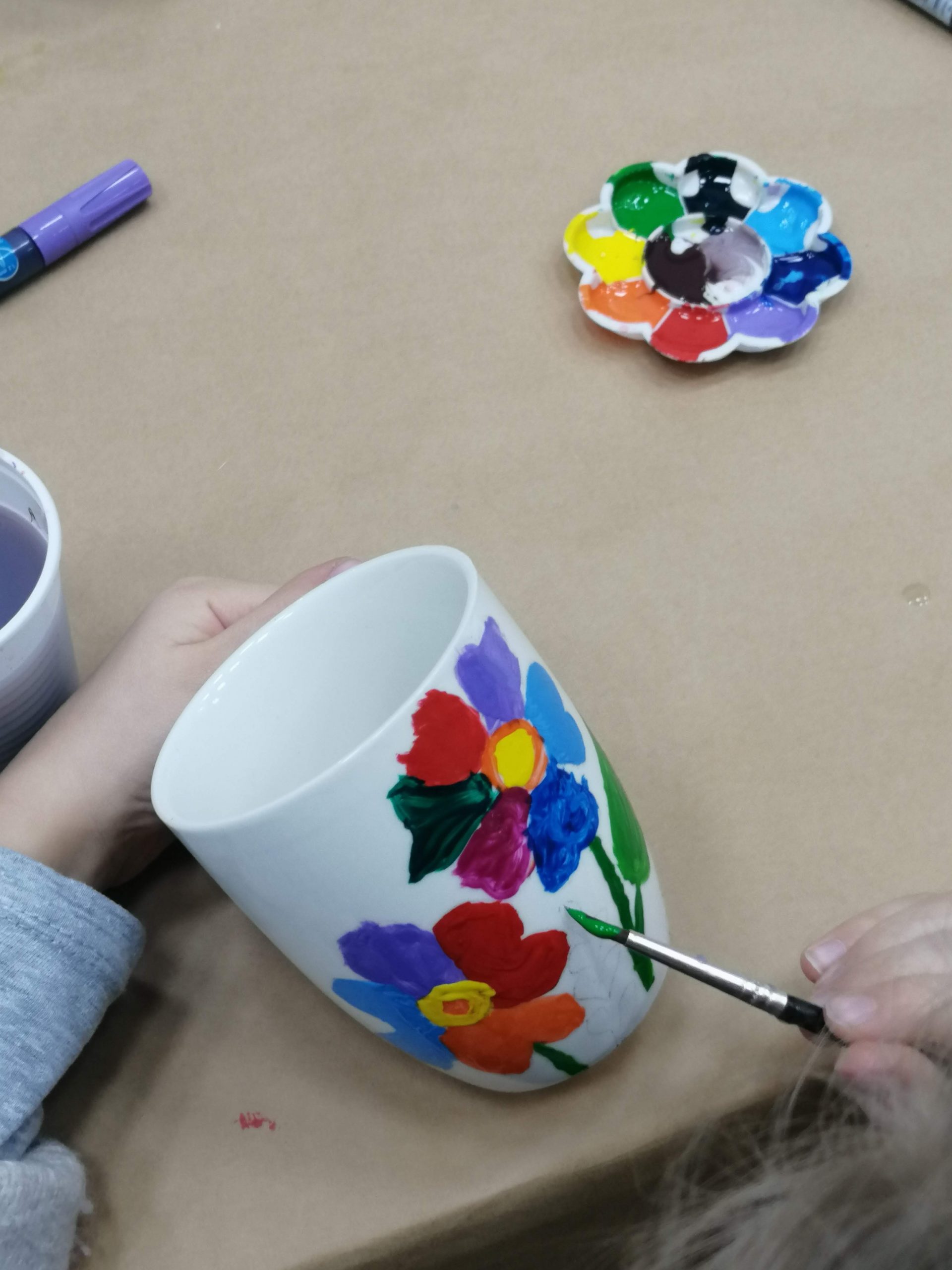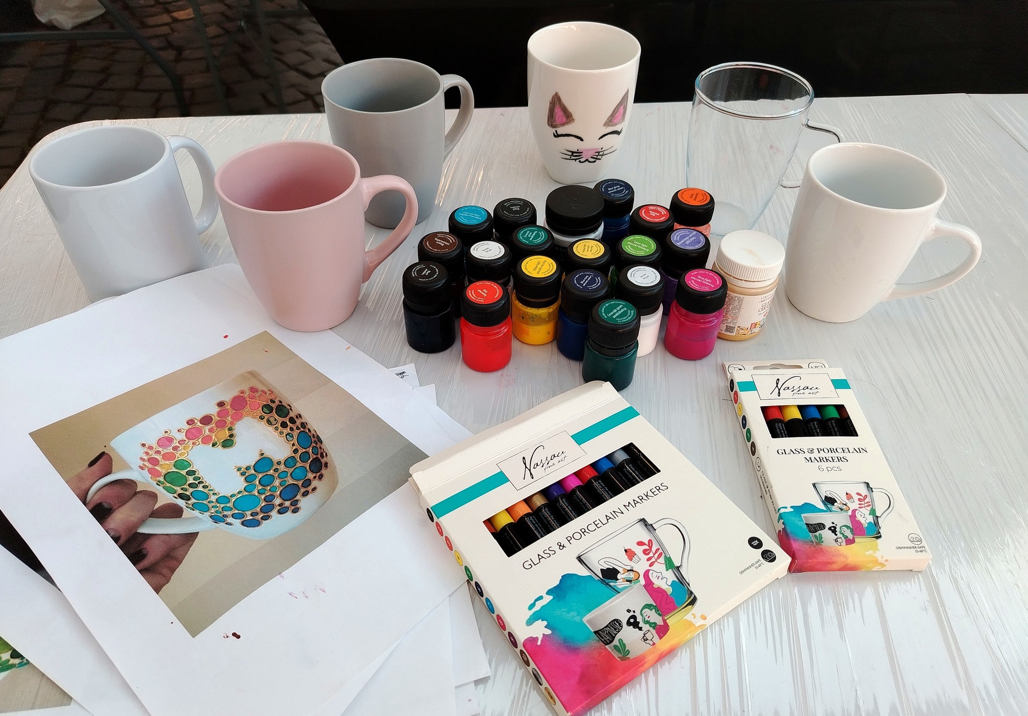 La atelierul de Pictură pe căni vei picta o cană de porțelan sau de sticlă, după preferință. Vom folosi culori și lacuri speciale pentru ca pictura să dureze cât mai mult în timp. Te voi ajuta cu toate instrucțiunile necesare pentru a finaliza pictura și a o fixa termic.
